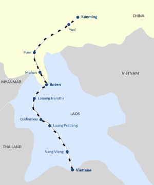 | Kunming → Yunnan Plateau → Mekong Basin → Vientiane | |